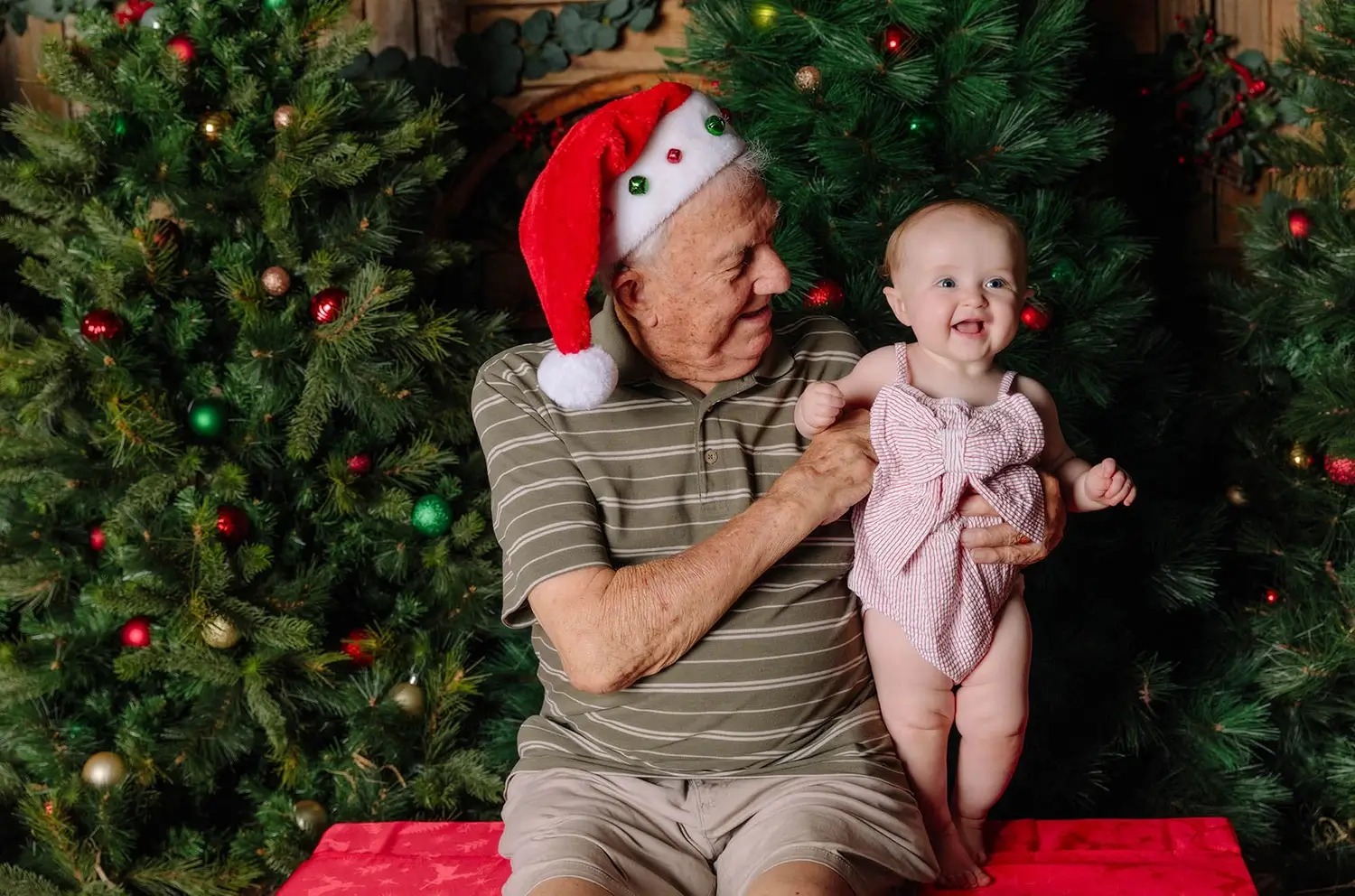 No. These Christmas photo sessions are Santa free. My set-up is timeless, a little rustic, and styled with gorgeous greenery and Christmas decor.